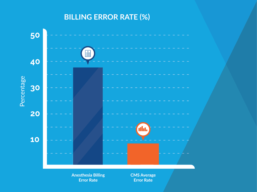 The American Medical Association (AMA) estimates that billing errors cost practices $36 billion annually from lost revenue, denied claims, and potential fines. Anesthesia, with its unique billing complexities, may bear a disproportionate share of the burden. By some studies, the error rate for Anesthesia has been as high as 38%, which is well above the 2024 Centers for Medicare & Medicaid Services (CMS) fee-for-service error rate of 7.66%.