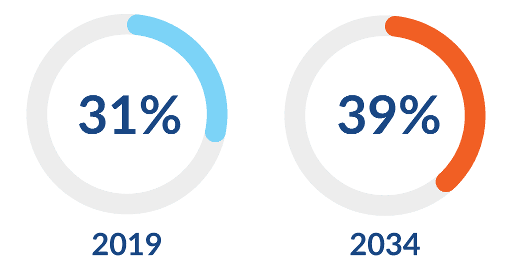 - Demand for anesthesia services is increasing exponentially as the population ages and surgical procedures become more complex. By 2030, the number of U.S. residents 65 and older will increase 55%, and their proportional demand for surgical services will increase from 31% to 39% by 2034. Overall, across populations, demand for surgical services is expected to increase up to 3% per year over the next decade.